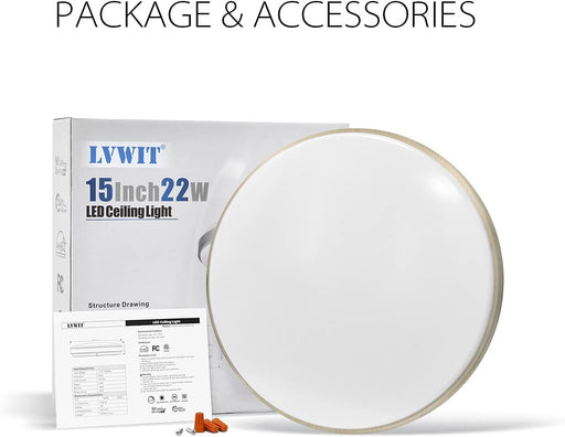 $120.99LVWIT 15 Inch LED Ceiling Light, Dimmable, 22W (160W Equivalent), 3000K Soft White, 1500 Lumens, Round Flush Mount Light, ETL Listed